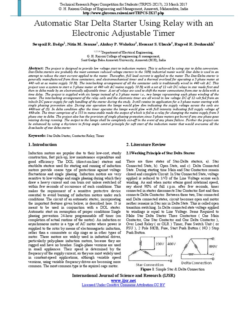 A set of relays are used to shift the motor connections from star to delta with a time delay. 555 timer was first introduced by signetics corporation in 1971 as se555/ne555. Star/delta starters are probably the most common reduced voltage starters in the 50hz industrial motor world. Unlike manual star delta starter in automatic star delta starter as shown in figure 2.2 an external circuit namely control circuit is present which consists of timer contacts. In this tutorial we will learn how to make a pwm dc motor speed controller using the 555 timer ic.